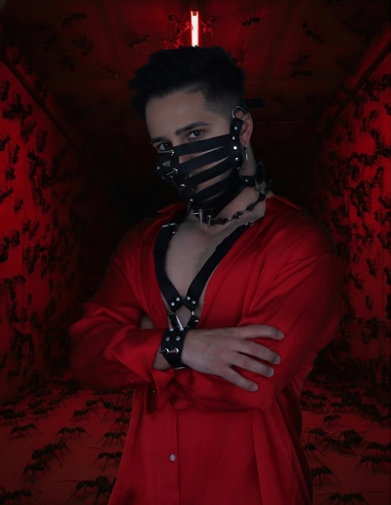 Con un vestuario impactante que combina cuero, pinchos y un rojo brillante, este DJ trae un espectáculo visual y sonoro que deja una marca imborrable en cada pista de baile.