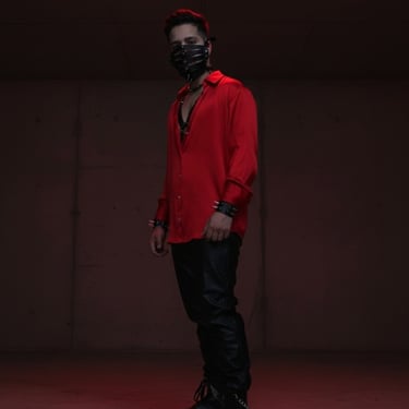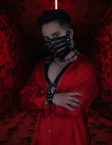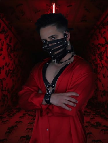 Con un vestuario impactante que combina cuero, pinchos y un rojo brillante, este DJ trae un espectáculo visual y sonoro que deja una marca imborrable en cada pista de baile.